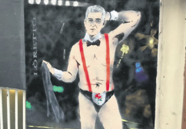 The artist also painted London Mayor Sadiq Khan in a mankini – an image painted in King’s Cross which was scrubbed out by Camden Council.