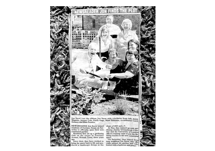 In the New Journal with newsreader Jon Snow at the opening of Torriano estate’s community garden in 2004