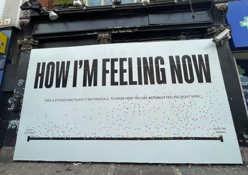The campaigners are angry that the front of the building is now used for advertising hoardings and tweeted last week that an interactive sign asking people to indicate how they were feeling by attaching stickers to a mood gauge was “hiding the Black Cap behind adverts and useless displays”.