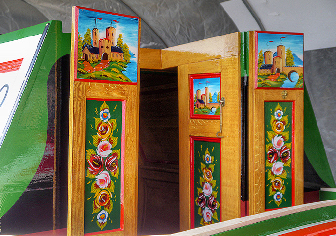 And with this new breed of canal folk, the traditional art work associated with barges and narrowboats was celebrated: a style associated with Romany culture boasted detailed brushwork that enjoys Louis XVII airs, alongside gentle floral and castle motifs. They remain the bargee’s trademark today.