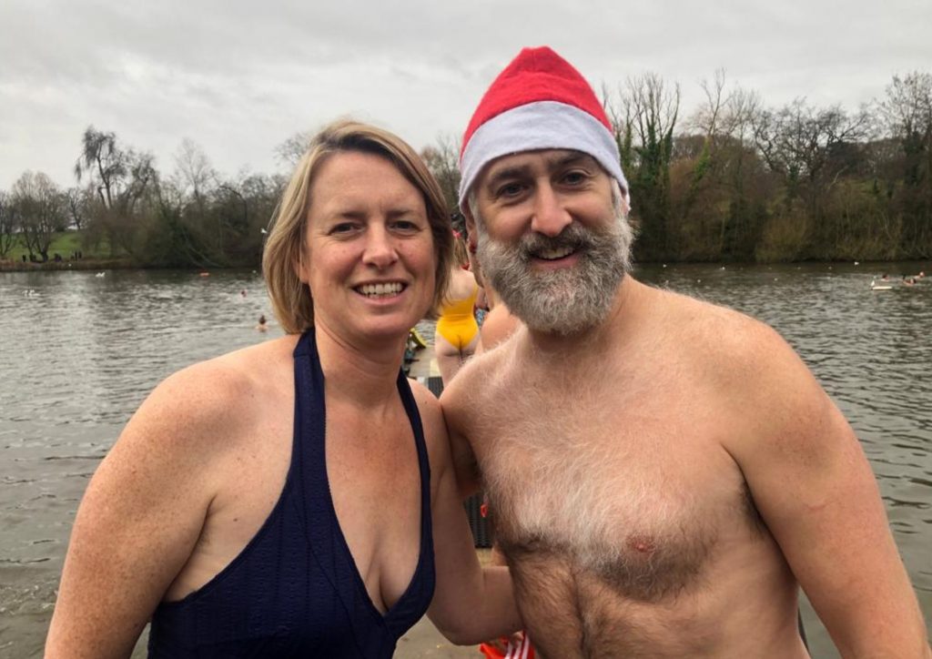The water was a balmy seven degrees – around four degrees warmer than last year – and with the Parliament Hill Lido and Ladies Pond also open, it was a bumper morning for Heath swimmers.
