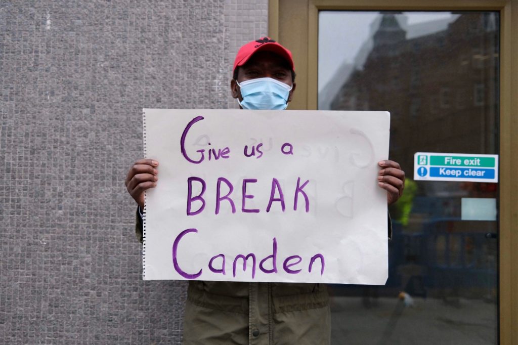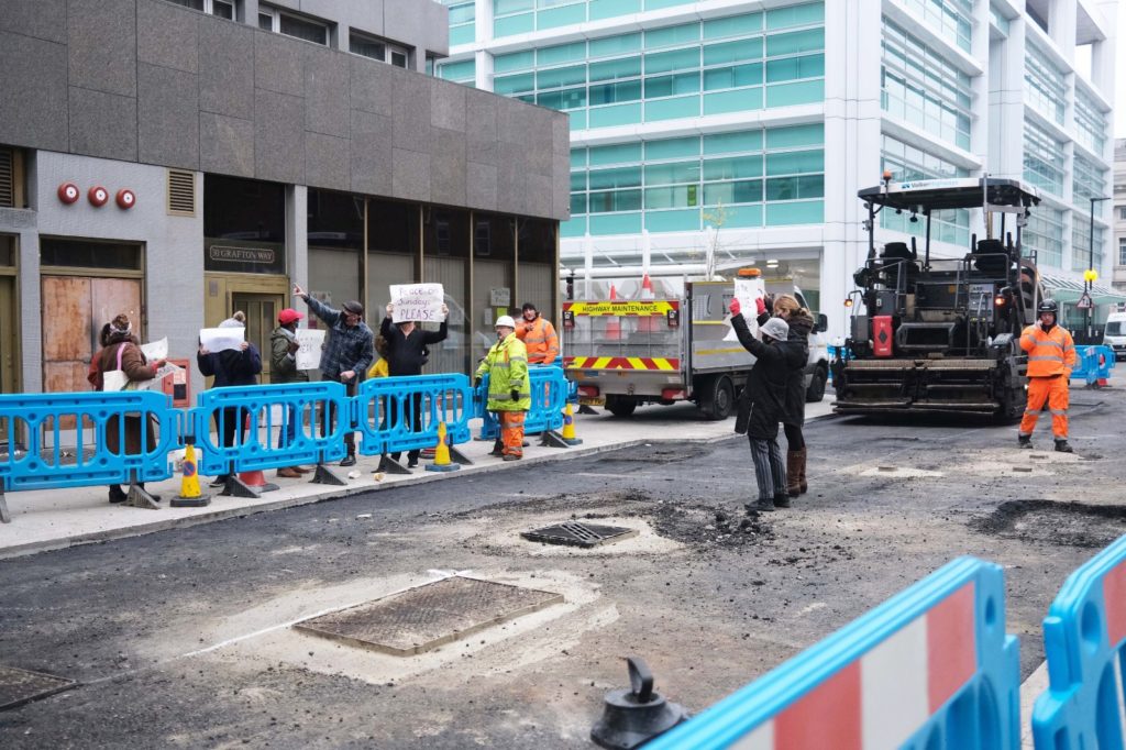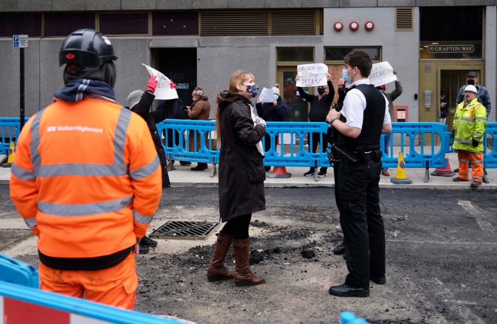 The protest, early on Sunday in Grafton Way, Euston, follows months of construction work in the area.