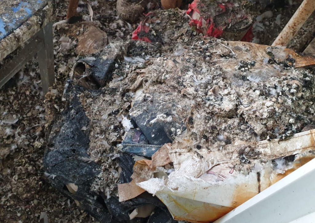 The balcony area covered in pigeon droppings