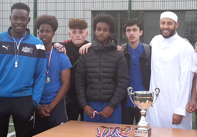 HERO Imam Mohammed Mahmoud who helped prevent further violence after June’s Finsbury Park mosque terrorist attack, gave out trophies to the winners of this year’s Peace Cup Football Tournament on Sunday. The competition, now in its sixth year, brings together 14- to 17-year-olds of all backgrounds and faiths in the borough and isrun entirely by volunteers. “It was very tense, the players get so passionate – the second semi final was so close, every body was waiting for the penalty soot out at one point,” said Roz Miller, one of the organisers from the Islington Faith Forum. Some 140 players took part in the event at Market Road football pitch, and the overall winners were the Supreme Young Voices youth group who narrowly beat a the Muslim Welfare House mosque 2-0. “I think it went well,” said Roz. “It was amazing to see what it means them to them. These young men draw a lot from being able to pay football and their level is really good. I had the police come by and support it and council officers said the level of playing was good and they were surprised.” The event was supported by local business Absolute Print Ltd and by Islington Council Targeted Youth Support and the Access to Sports Project.