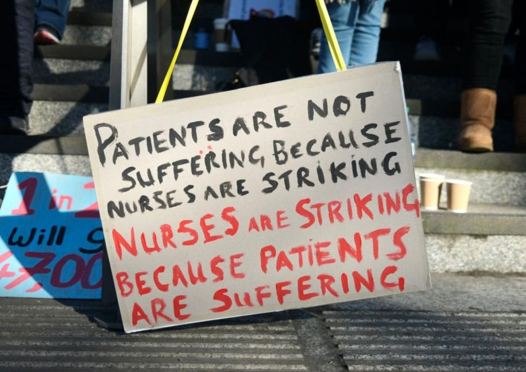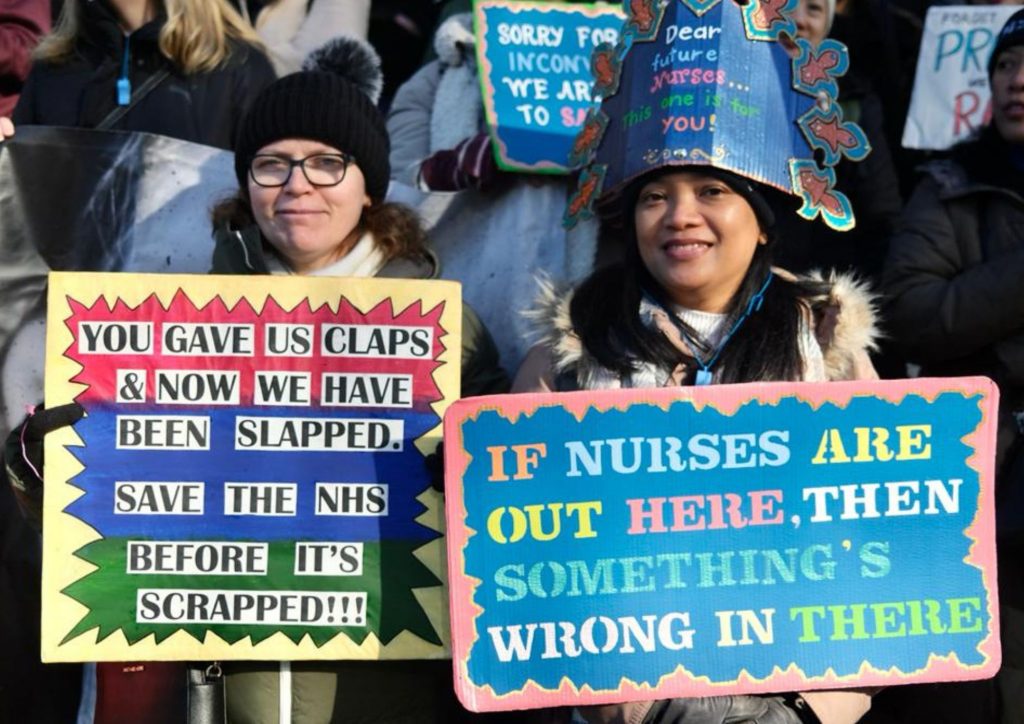 Strikers’ chants included: “1, 2, 3, 4, 5 – Keep Our NHS Alive!”