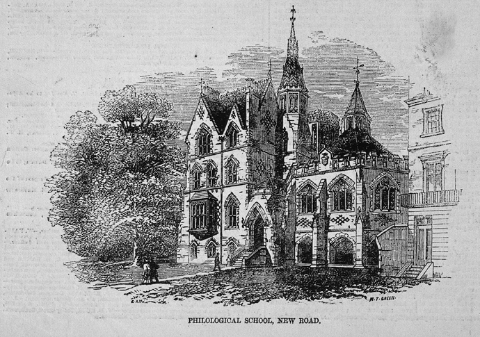 Our first port of call is at the Grove’s southern end, where we pause outside the red-brick Gothic façade of the Philological School, originally established in 1792 in Fitzroy Square by Oxford don Thomas Collingwood.