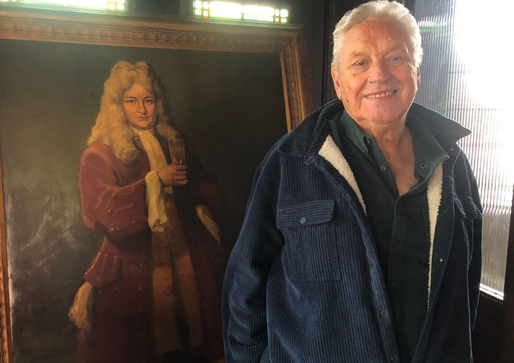 Mr McGrath with the old portrait of Sir Richard Steele