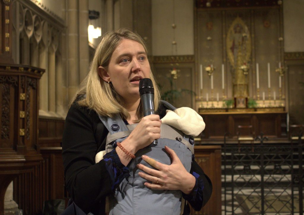 Georgia Gould breaks off from her maternity leave to speak at the meeting