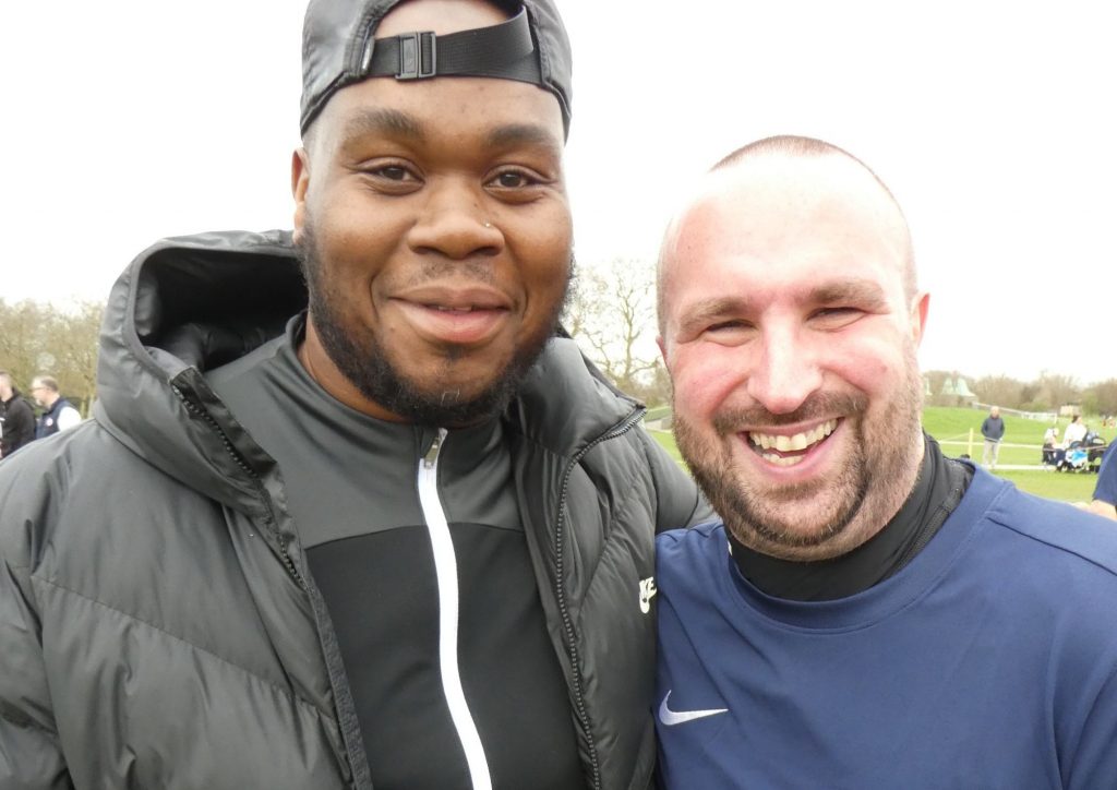 Youth league referee organiser Dennis Owusu and Kentish Town coach Thomas Looney [Catherine Etoe]
