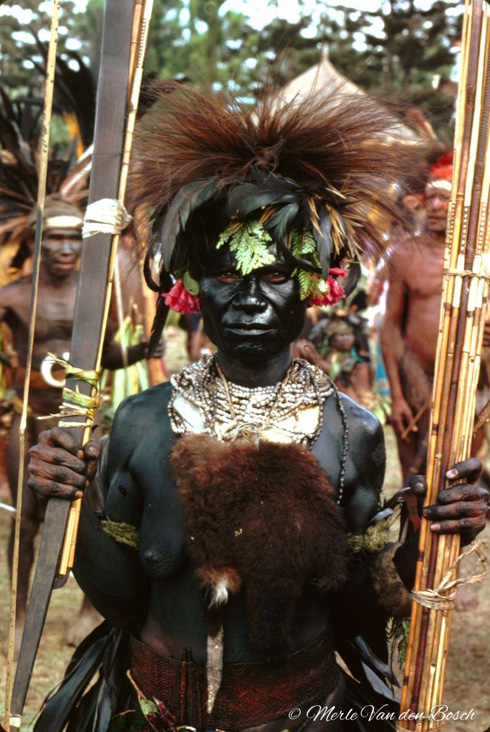 “Every two years they hold a harvest festival comprising 800 tribes who gather in Goroka, a town in the Highlands region, to sing and dance for two days,” explains Merle.
