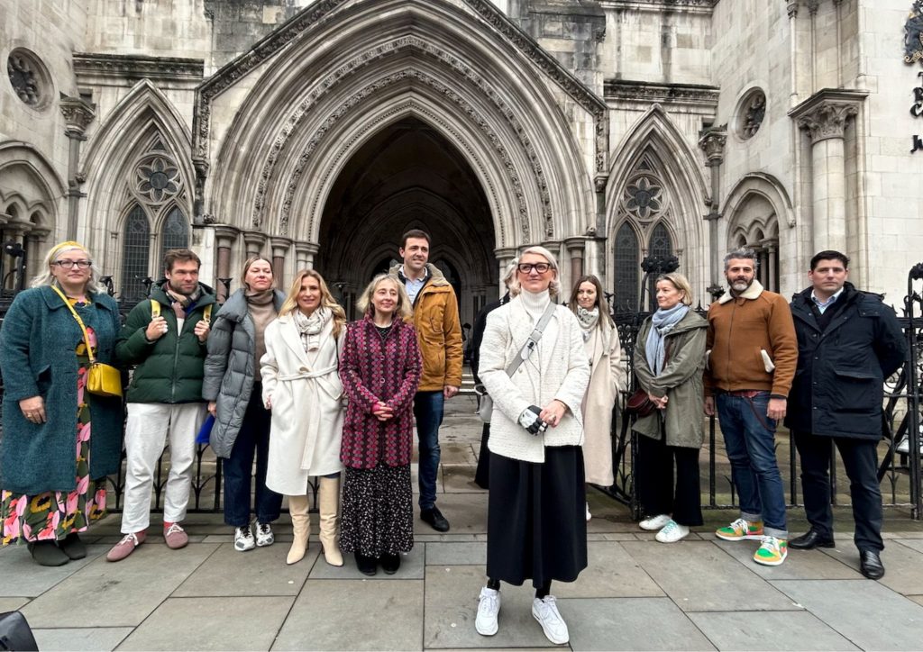 Sarah de Lagarde with family and friends outside the Royal Courts of Justice